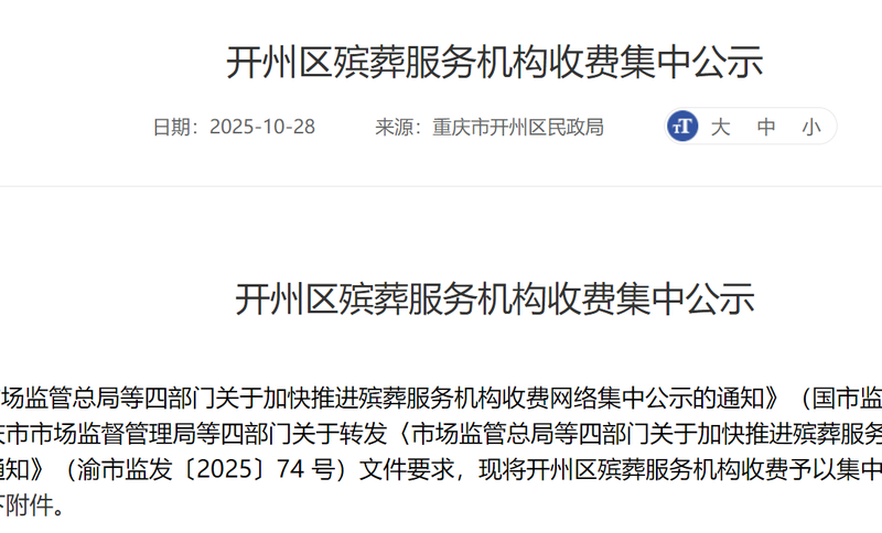 在现代社会,随着人们生活水平的提高和对精神文化生活需求的增加,对于死亡的态度也更加理性和尊重。开州区作为重庆市下辖的一个区,其殡葬服务的价格一直是社会关注的焦点。近日,开州区政府公开了该区的殡葬价格公示,引起了广泛的关注和讨论。